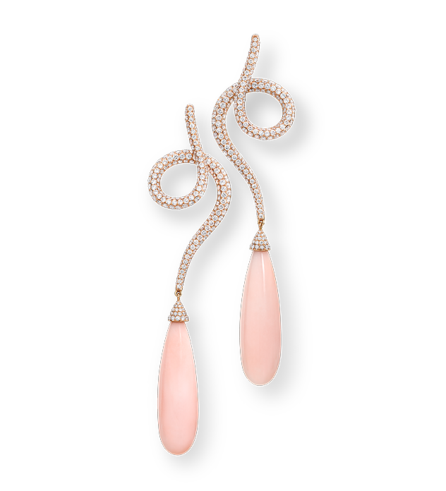 452 brillantcut Diamonds 4,24ctSoft pink coral twirl earrings -