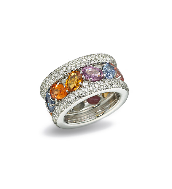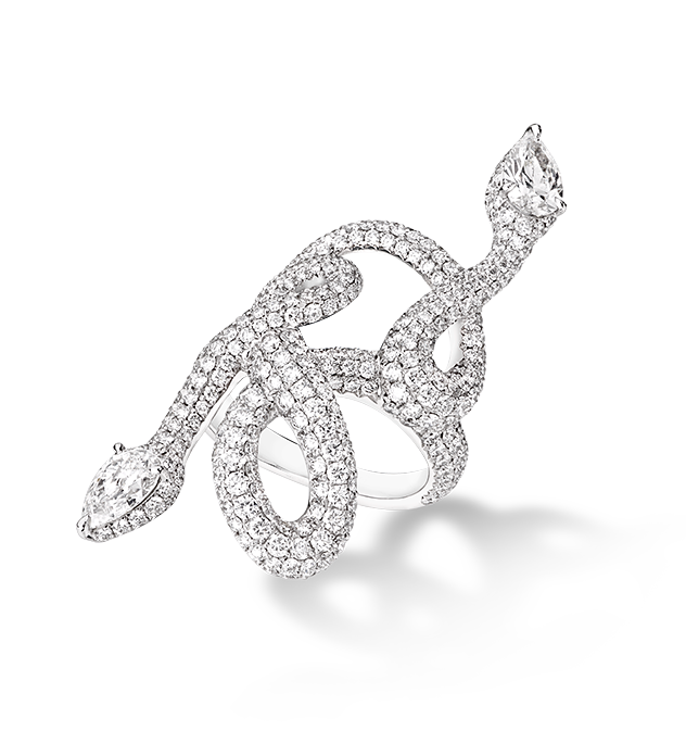 418 brillantcut Diamonds 3,85ctTwoheaded diamond twirling snake ring -