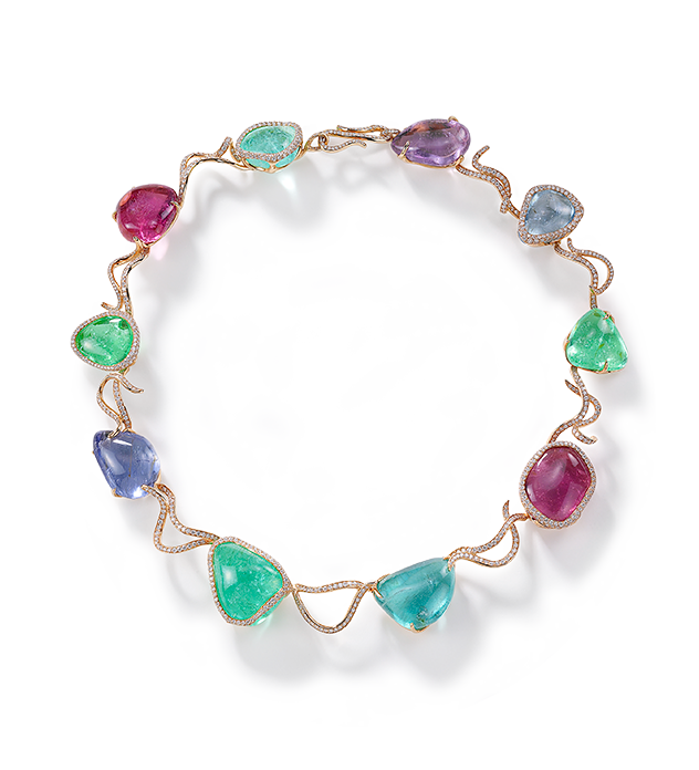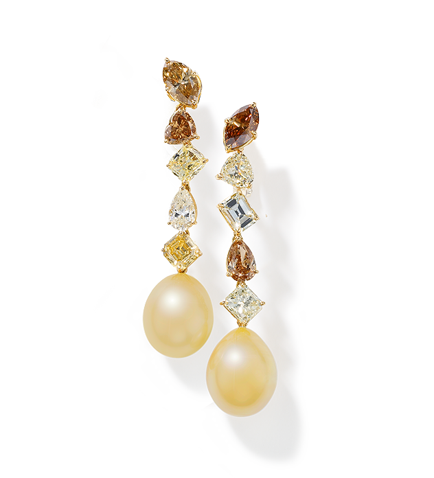546 brillantcut diamonds 5,07ctEmerald and diamond twirl earrings